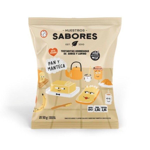 Tostadas de Arroz y Lupino sabor Pan y Manteca x 50g SIN TACC - Nuestros Sabores