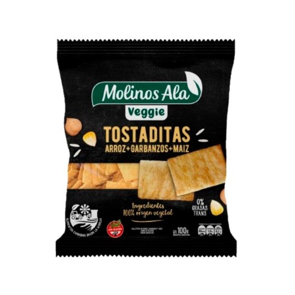 Tostadas Veggie de Arroz y Garbanzo x 100g - Molinos Ala - Tostadas veggie de arroz y garbanzo, nutritivas y deliciosas.